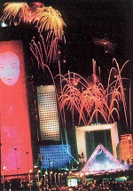 Hundertausenden Touristen besucht. Ein Jahr später hat Jean-Michel Jarre mit einem großartigen Spektakel, das von zwei Millionen Zuschauern zwischen dem Triumphbogen und der Grande Arche verteilt bewundert wurde, die
